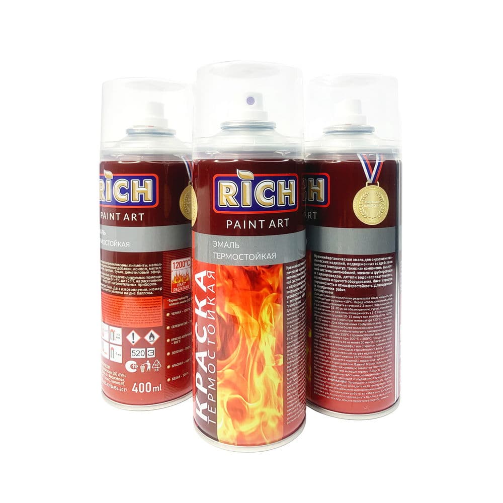Кремнийорганическая эмаль для окраски металлических изделий, подверженных воздействию высоких температур, таких как компоненты выхлопной системы автомобилей, элементы трубопроводов и паропроводов, детали водонагревательного, котельного и прочего оборудования. Имеет хорошую укрывистость и атмосферостойкость. Для наружных и внутренних работ.